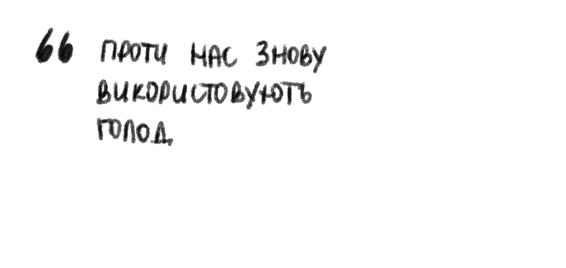 «У нас в хаті від штучної голодовки померло четверо. В хаті в баби Мусі ‒ троє. У Тетяни зчахли чоловік і немовля. Нашого Семена та Марію розкуркулили. Їхніх дітей отобрали в дєтдом. У тій хаті, де зараз Валік, жив рідний брат діда з сім’єю. Їх руські вислали до Сибіру і забрали все господарство. Діда Івана вбили в 1936-му за Сталіна…»