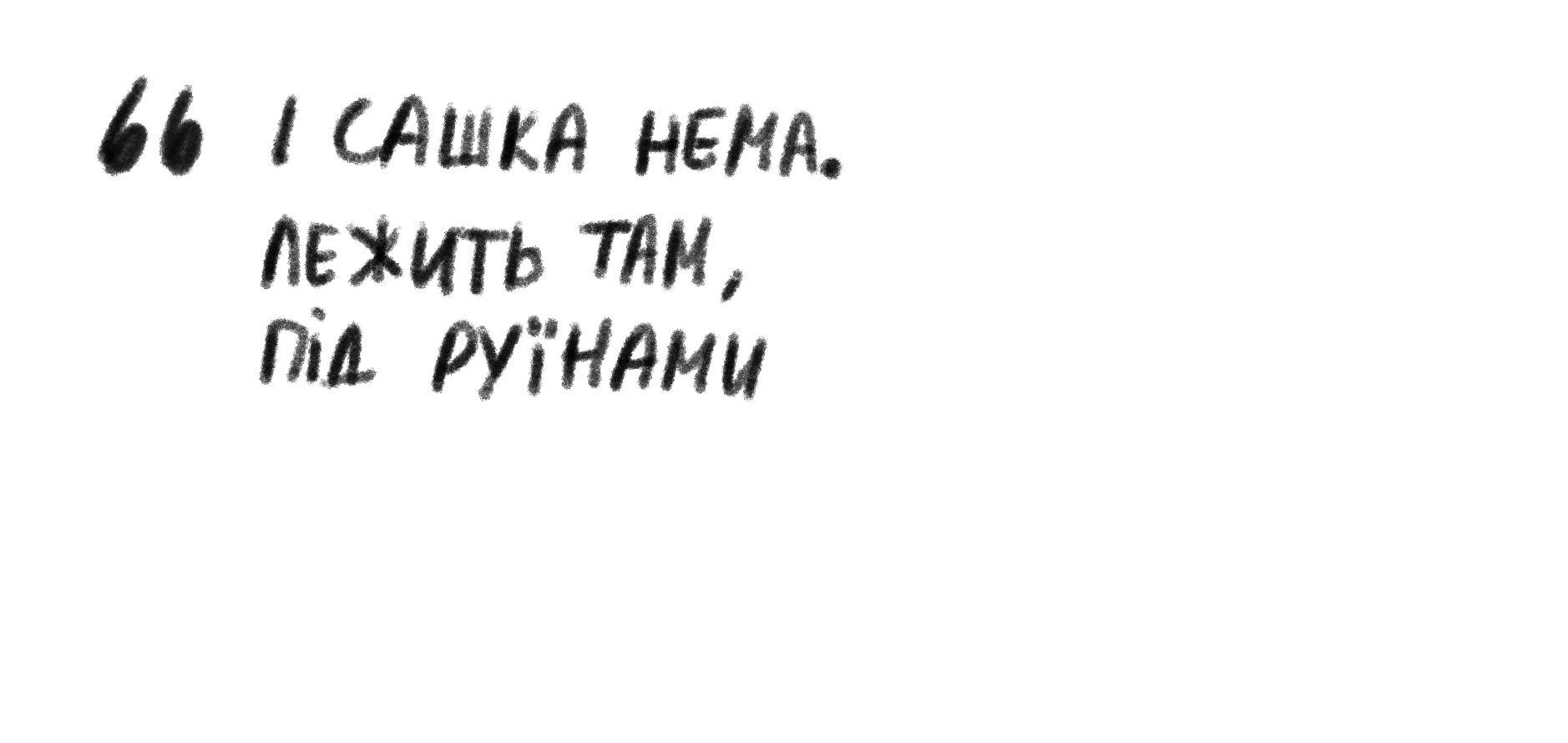 Я дивлюся на сонячні промені, кленове молоденьке листячко, хочу вийти на прогулянку. Я тону в палючому гніві. І не вірю, що це реальність. Що все це відбувається зі мною! Пригадую сусіда Сашка. Сашко, хуліганистий мій однокласник, з яким малим грались у піжмурки та «В магазині». Він обзивав мене баклажаном, коли я не давала списувати. А ще цей кострубатий дядько з добрими синіми очима класно готував м’ясо на шашлик та міняв шини на моєму старому жовтому пежаку. Сашко мешкав на 3 поверсі, його двері, оббиті чорним дерматином, із дешевою, під золото, окантовкою, знайомі мені з дитинства. А тепер цього всього нема. І Сашка нема. Лежить там, під руїнами.