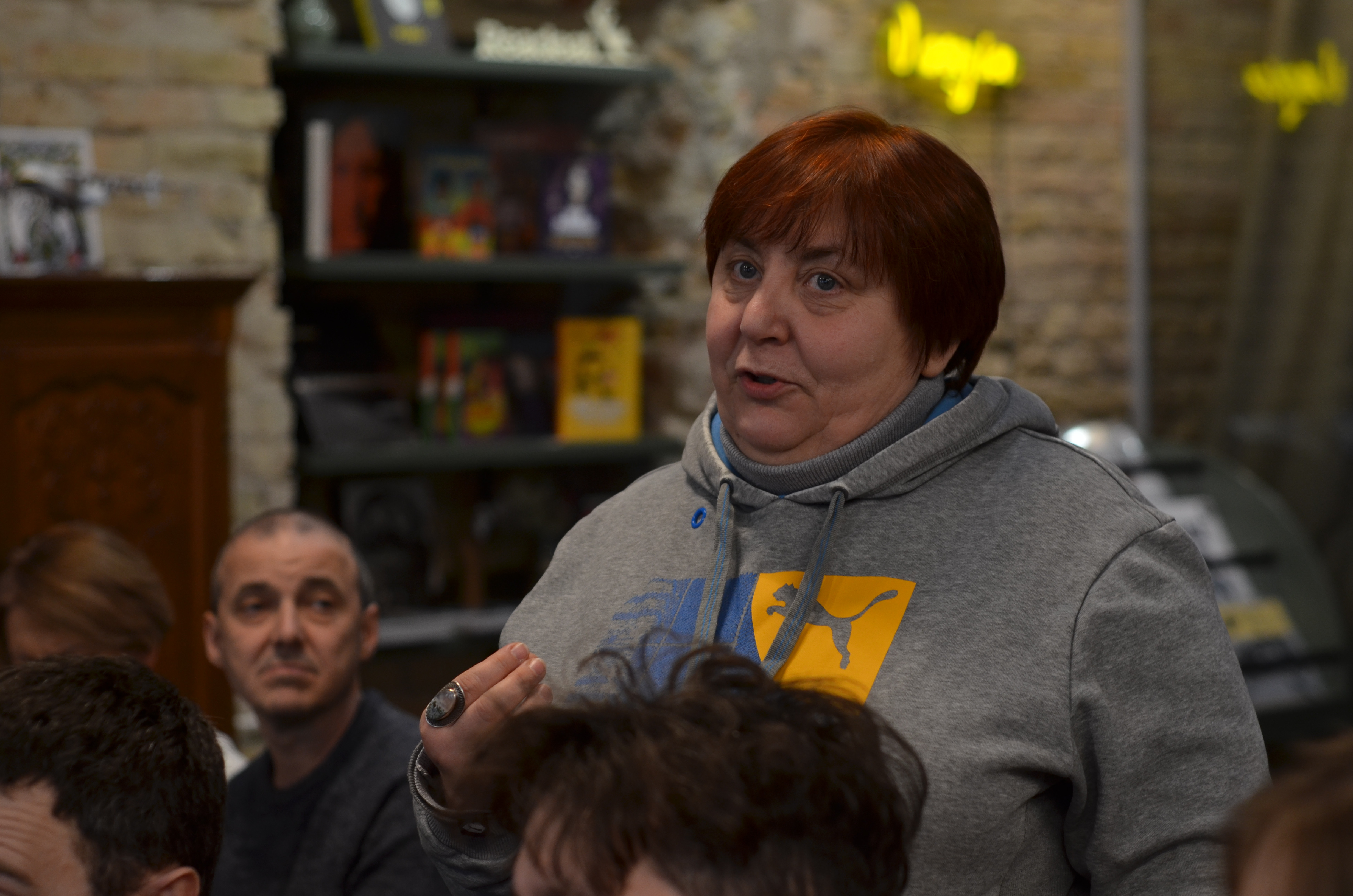 Громадська діячка, авторка оповідання про окупацію Бучі Наталія Гуран розповіла, що у своєму тексті вона через призму відносин людини і тварини показує всі страхіття окупації. Презентуючи свою історію Наталя звернулась до присутніх із закликом: